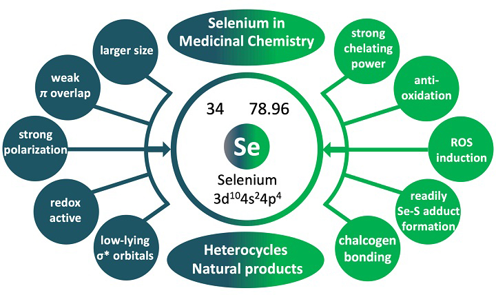 圖2. 硒的化學(xué)性質(zhì)與其藥物化學(xué)生物學(xué)性質(zhì)的聯(lián)系。圖片來源:J Med Chem