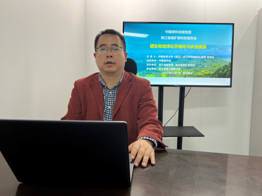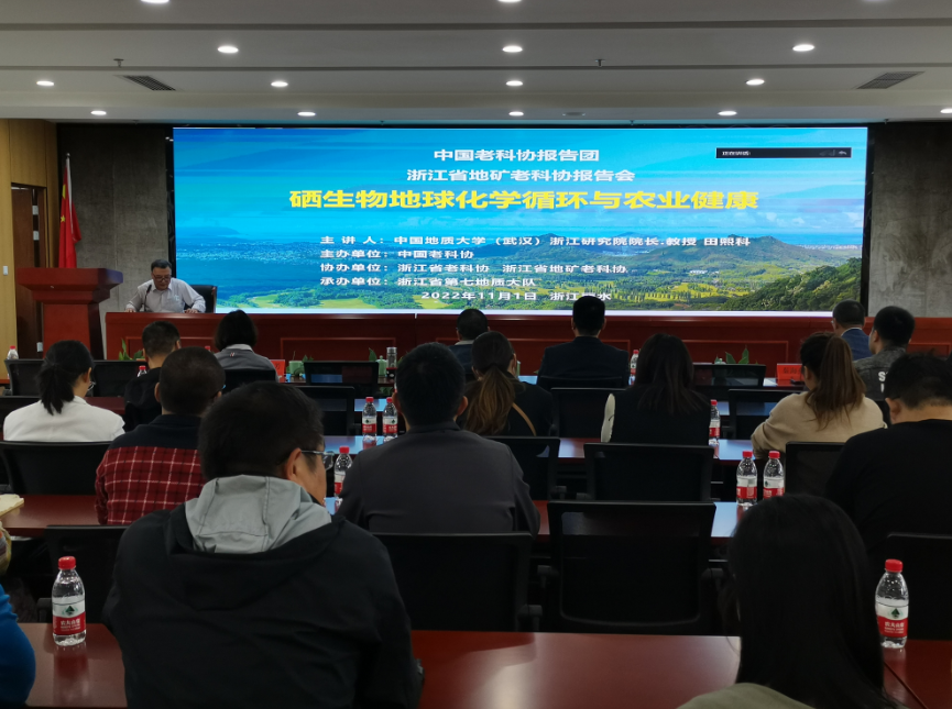 11月1日下午,由中國老科協主辦、浙江省老科協及浙江省地礦老科協協辦、浙江省第七地質大隊承辦的《硒生物地球化學循環與農業健康》科普報告會在我隊麗水科研大樓成功舉辦。中國地質大學(武漢)浙江研究院院長、教授、博士生導師田熙科受邀為來自省內多家地勘單位的50余位地質技術人員作“硒生物地球化學循環與農業健康”的線上科普報告。中國地質大學(武漢)浙江研究院副院長王肖戈,省第十一地質大隊黨委書記、隊長吳義,大隊黨委副書記、副隊長王志國,省第十一地質大隊黨委委員秦海燕出席報告會。活動由省地礦老科協副秘書長陳衛良主持。